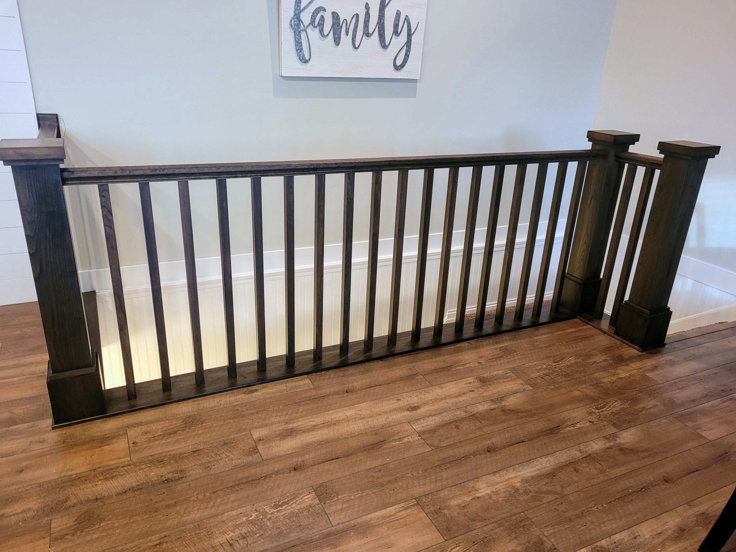 Professional installation by experienced craftsmen, guaranteeing precision and durability for every stair railing. We install and finish are stair railings with a stain and varnish or paint to protect and beautify your stairway. We save you time and money by finishing your railing so you do not need to hire another contractor.