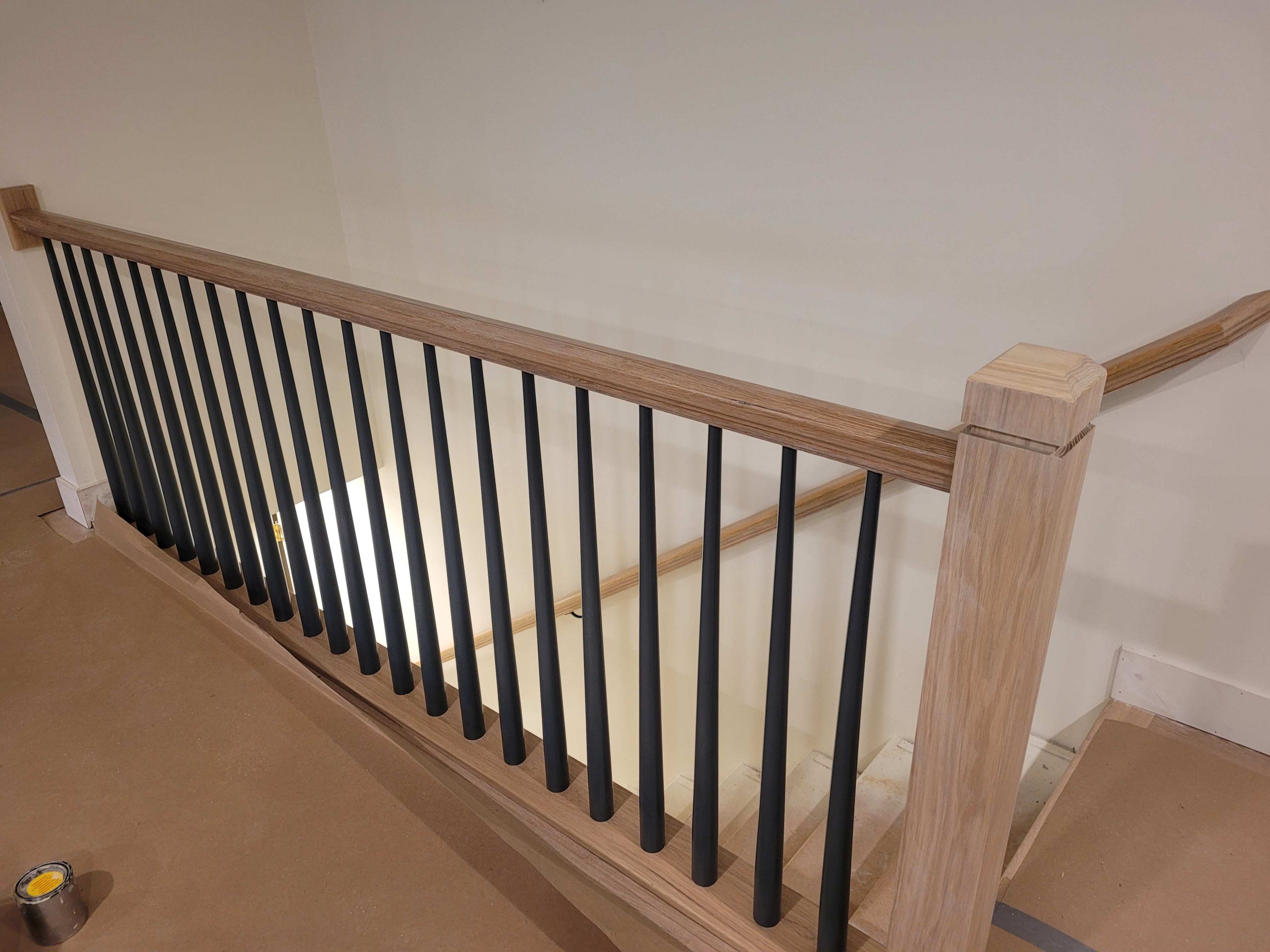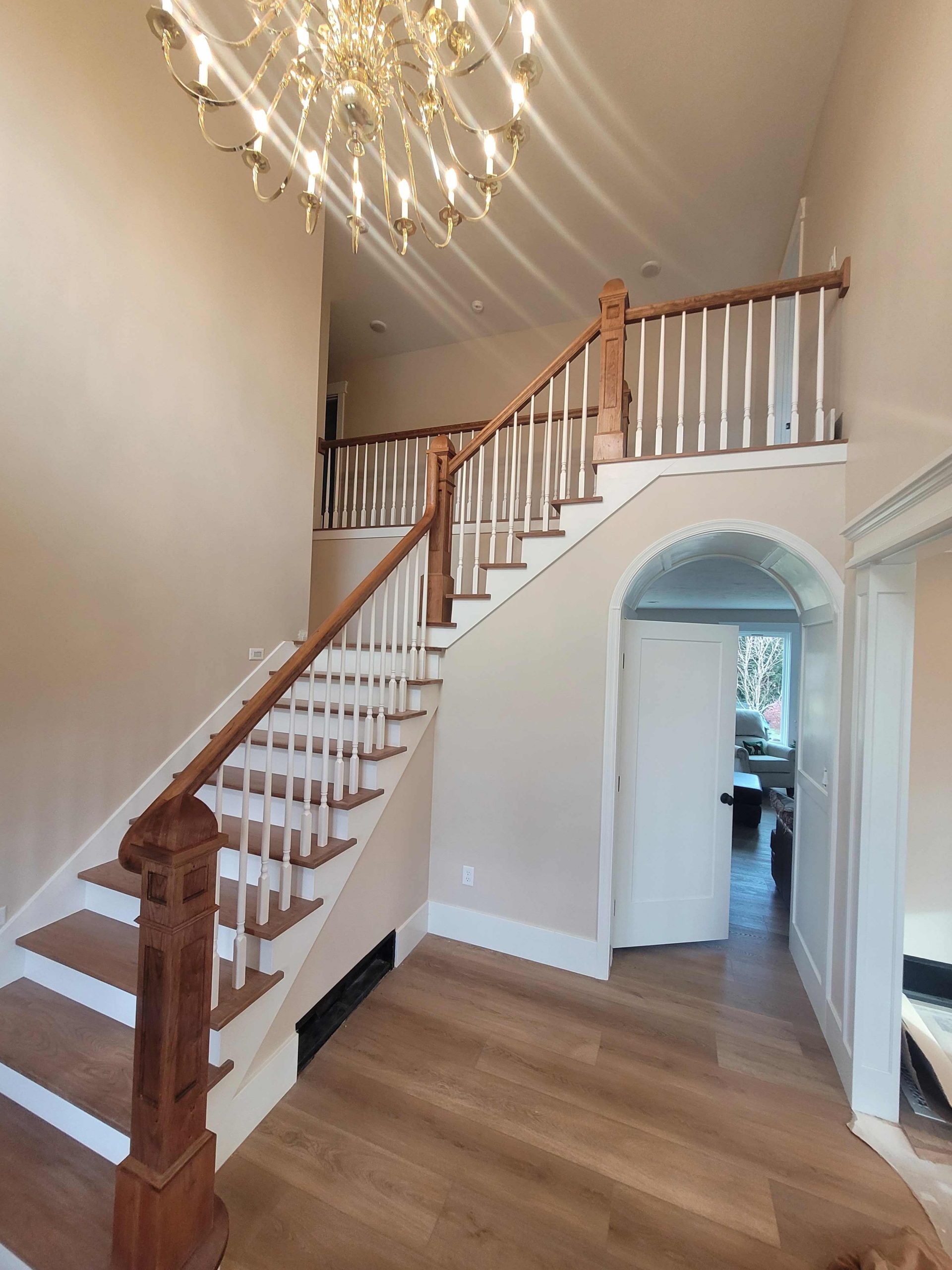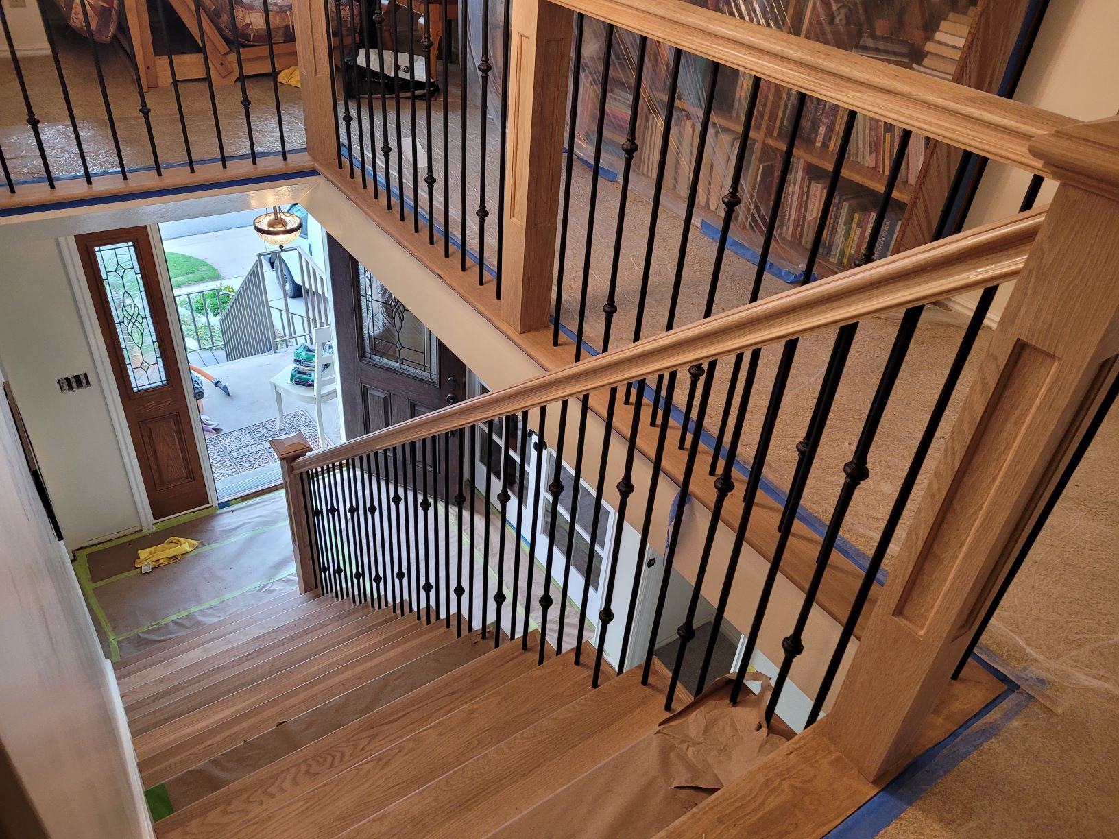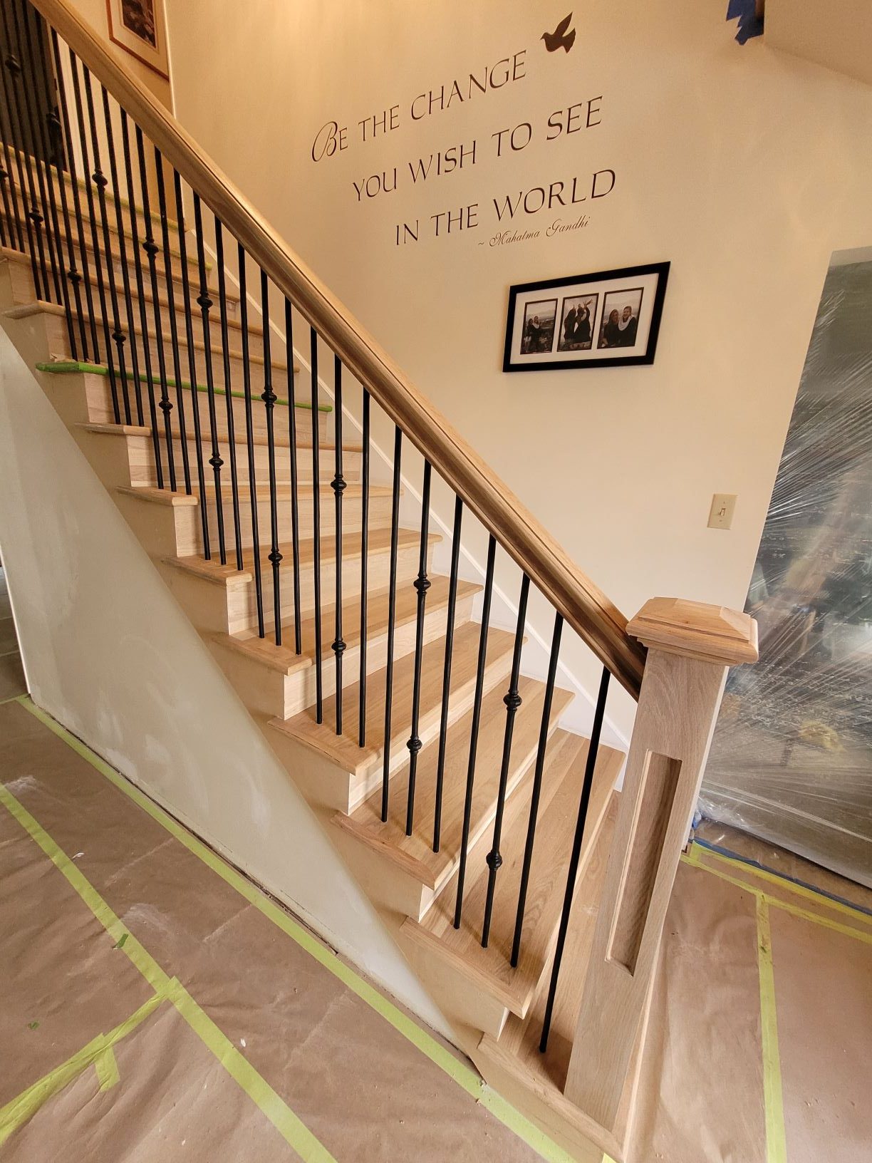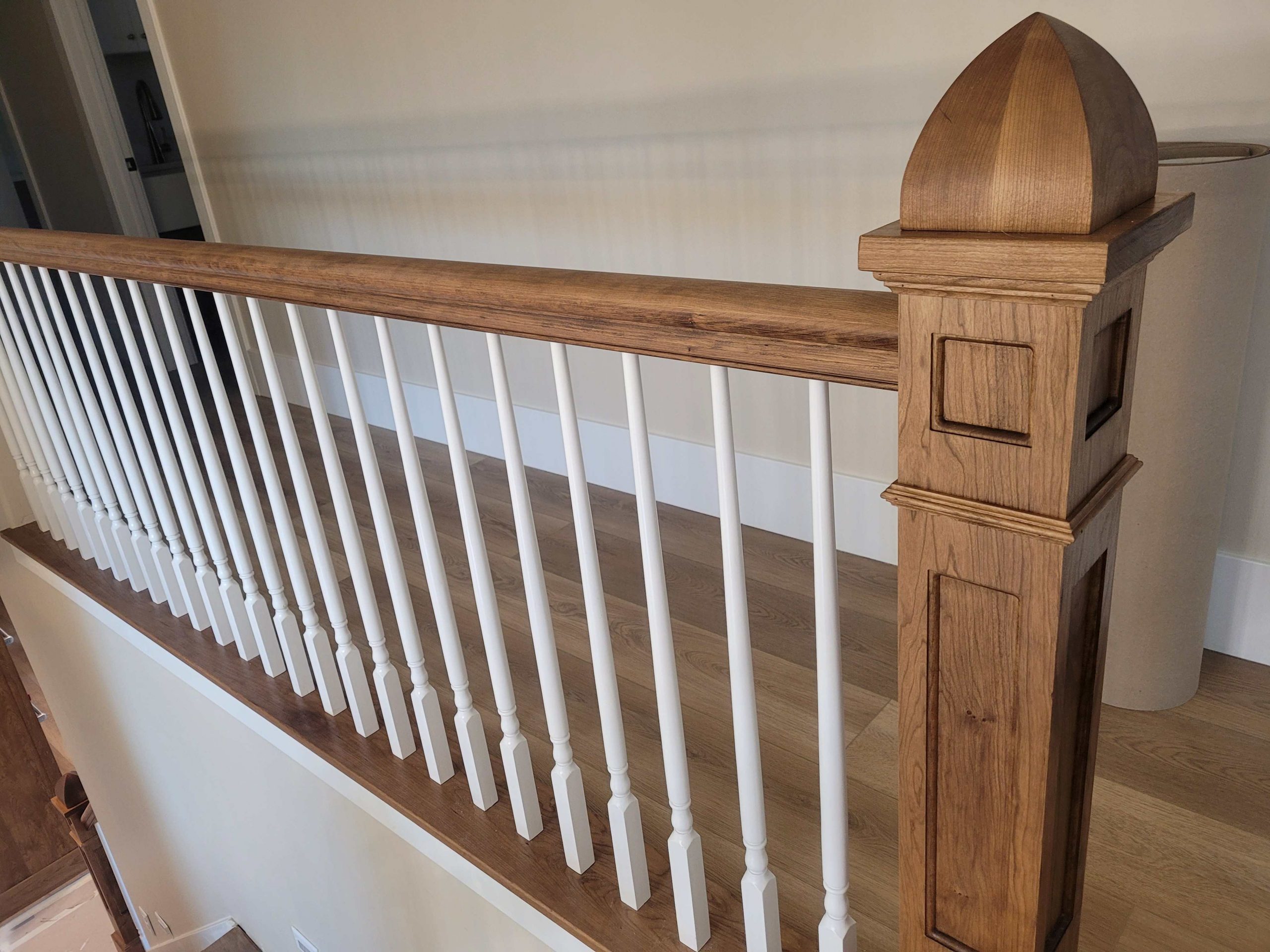 Professional installation by experienced craftsmen, guaranteeing precision and durability for every stair railing. We install and finish are stair railings with a stain and varnish or paint to protect and beautify your stairway. We save you time and money by finishing your railing so you do not need to hire another contractor.
